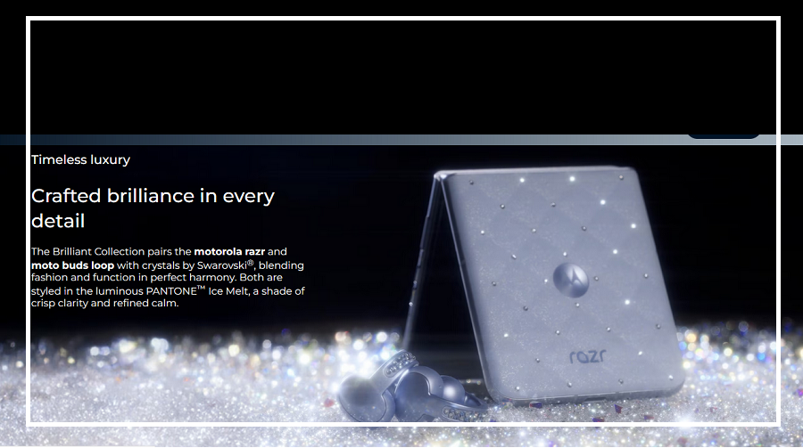 On the hinge, Motorola has added 24-facet crystals, while the volume button also carries a crystal-inspired design.